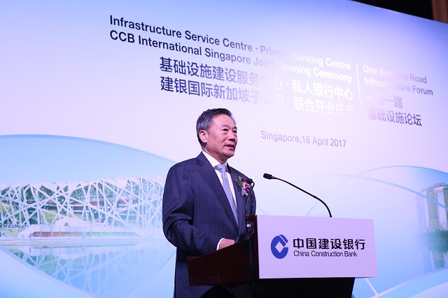 2017年4月18日,中国建设银行新加坡基础设施建设服务中心、私人银行中心及建银国际新加坡子公司联合开业庆典在新加坡瑞吉酒店举行。新加坡教育部长暨交通部第二部长黄志明、中国驻新加坡大使馆临时代办房新文、新加坡金融管理局执行董事Bernard Wee、新加坡国际企业发展局、新加坡工商联合会、新加坡中华总商会、新加坡中国商会、新加坡通商中国等机构负责人和来自中新两地的百余家企业和金融机构代表出席了此次开业活动。中国建设银行行长王祖继出席并主持开业仪式。